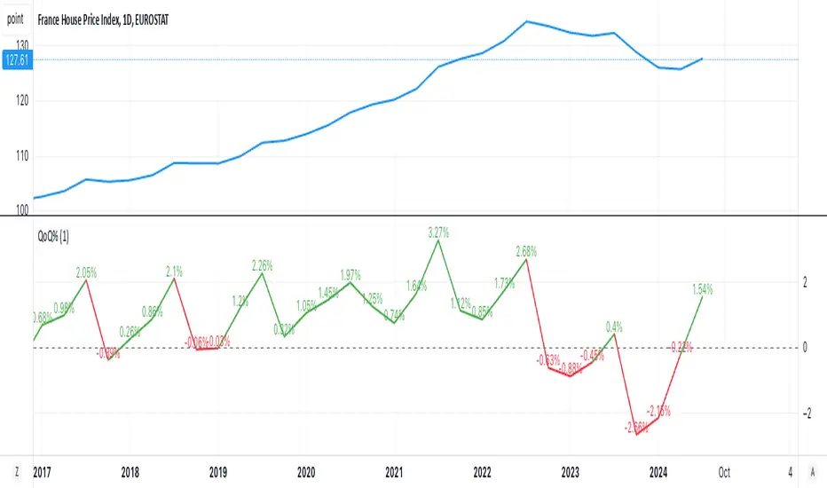 A straightforward indicator for analyzing quarter-over-quarter (QoQ) percentage changes in economic and financial data series. Perfect for visualizing dynamic changes in: