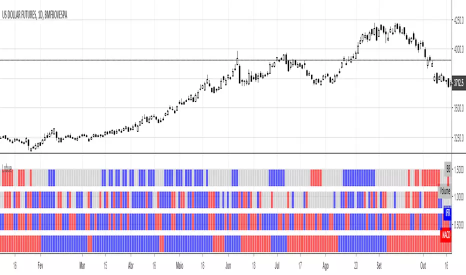 In the current script are added the technical indicators: MACD, IFR, Volume with your average and Bollinger Bands, but with customizations, this script can adapt easily to the most varied technical indicators, without limit on the number of indicators and the coloring conditions.