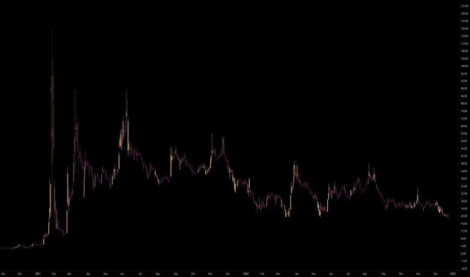 This indicator colours candles based on their volume for a set period of time. The highest volume & lowest volume in this period are set by 2 colours, & any candle with volume inside the range will have a colour based on the gradient created by the 2 colours. Ability to hide the candle body, wick, border if preferred (Hide candlestick body, wick, border, through the settings if applicable). Features 20 pre-set themes + ability to set your own custom theme.