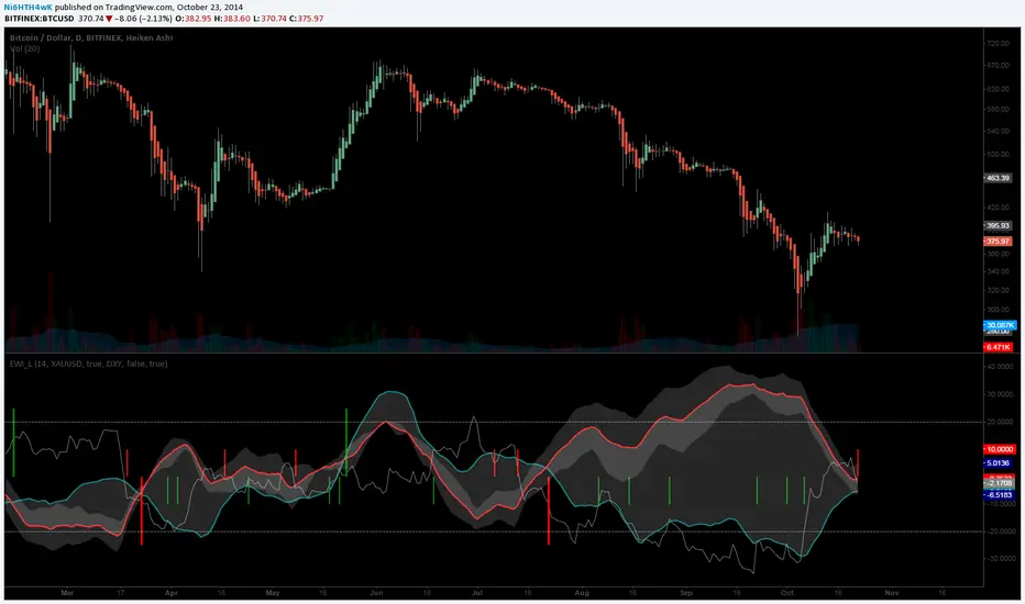 Combined the RSI inverse of gold to USD with the Dollar index (or whatever stock symbol that may be inverted/complementary) with another asset/currency, like bitcoin, you can basically be well informed when a potential move is on the horizon. Settings allow for inverse settings and de-combining the two pairs as well as a nice cloud look if all the lines get annoying.