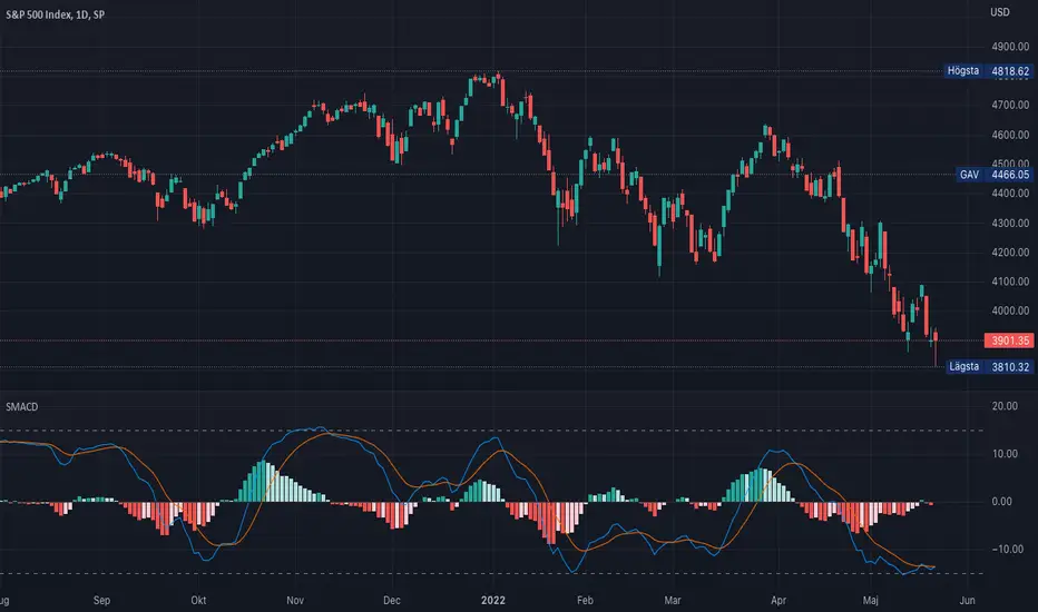 StochasticMACD (SMACD) is an oscillating momentum indicator. It is based on MACD but run through a stochastic oscillator.
