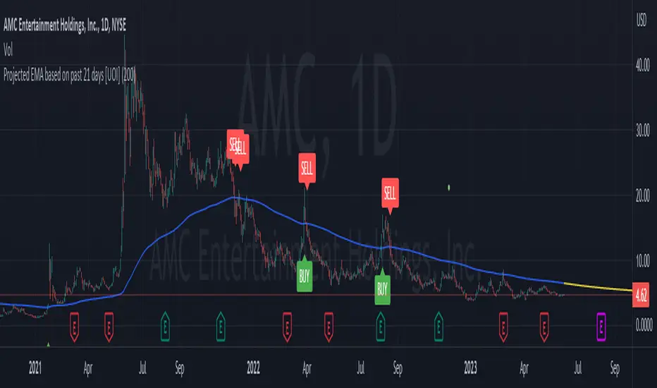 This indicator is designed to help you predict the future crossover point by calculating the average price over the past 21 days and projecting the 200-day EMA for the future.