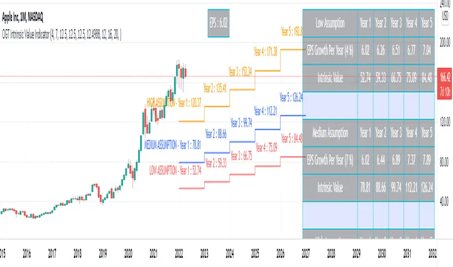 This indicator will show you visually the intrinsic value of a stock. Intrinsic value aims to measure of what an asset is worth. There are a number of intrinsic valuation models where this TradingView indicator uses an earnings valuation model.