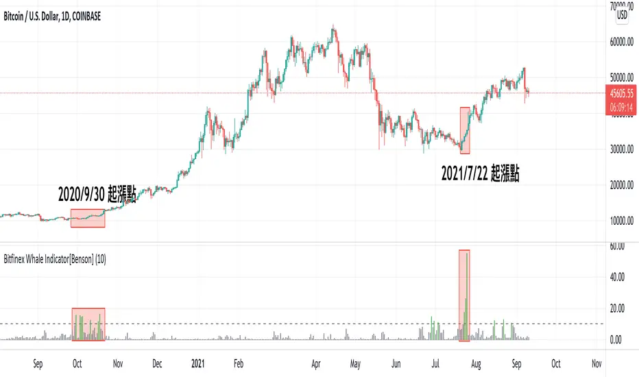 當指標柱變為綠色時,表示巨鯨正在累積多頭部位,可能會是現貨的絕佳買點。