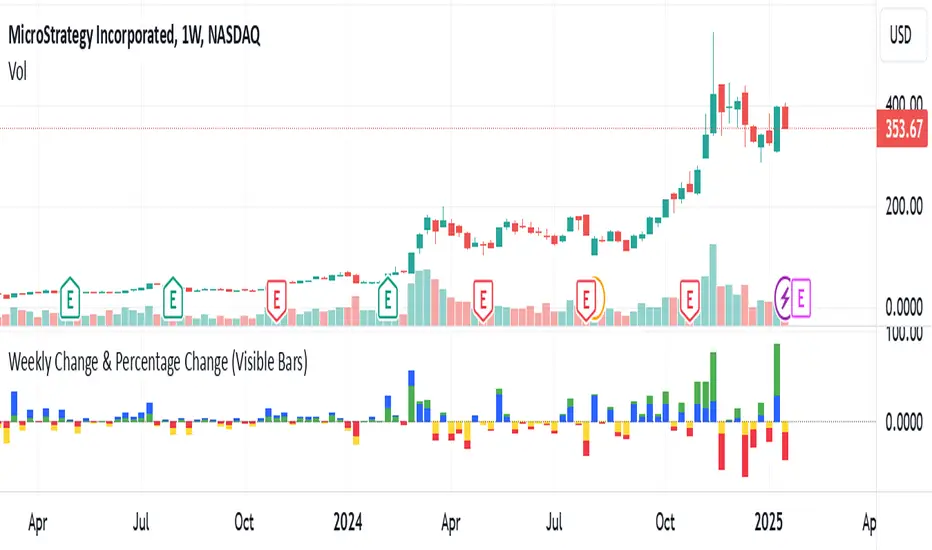 Bar chart of weekly price action. Display in percentage and absolute values. Use to determine historical maximum price change weekly, possible strike price for covered call option to create weekly income.開源腳本