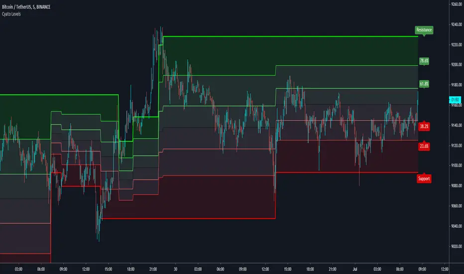Simply add the indicator to any chart from the invite only tab. This indicator instantly display Support/Resistance and Fibonacci levels. Works on any TradingView market : Forex, Stocks, Cryptocurrency, CFD, Futures, Indexes. You can use it on any timeframe.