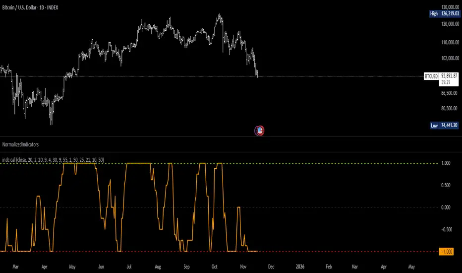 Indicator Calibration is a powerful consensus-based trading indicator that leverages the MyIndicatorLibrary (NormalizedIndicators) to combine multiple trend-following indicators into a single, actionable signal. By averaging the normalized outputs of up to 8 different trend indicators, this tool provides traders with a clear consensus view of market direction, reducing noise and false signals inherent in single-indicator approaches.