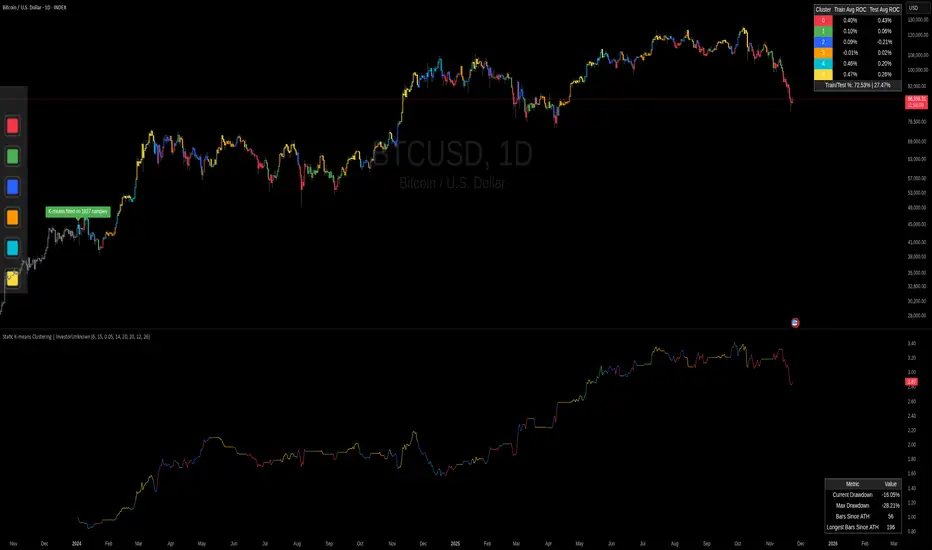 Static K-Means Clustering is a machine-learning-driven market regime classifier designed for traders who want a data-driven structure instead of subjective indicators or manually drawn zones.