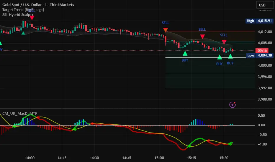 It's a ready to trade script V5, that takes the original SSL Hybrid logic and optimizes it for XAUUSD scalping on 1min to 15min charts for buy & sell signals.