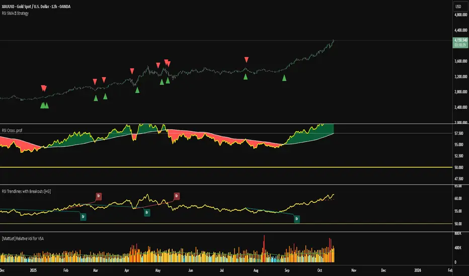 Exit Signal (Sell): Triggered when the current RSI value crosses below the SMA of RSI from the previous bar.