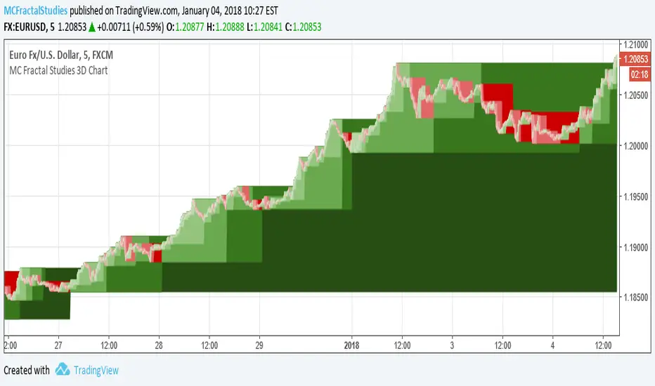 MCFractal Studies 3D Chart show the various supports and resistances on the chart, using different colours to differentiate them.