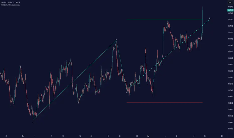 The AB=CD [Real-time] (Zeiierman) indicator is designed to automatically detect the ABCD pattern across any chart and timeframe as it unfolds. Activating when point C forms, it automatically draws the D line, giving traders immediate entry, stop-loss, and target signals.