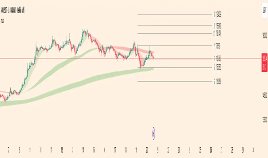 This indicator is based on moving averages over a certain period using Fibonacci numbers. Pivot points are provided for active trading, which help to trade from the levels.