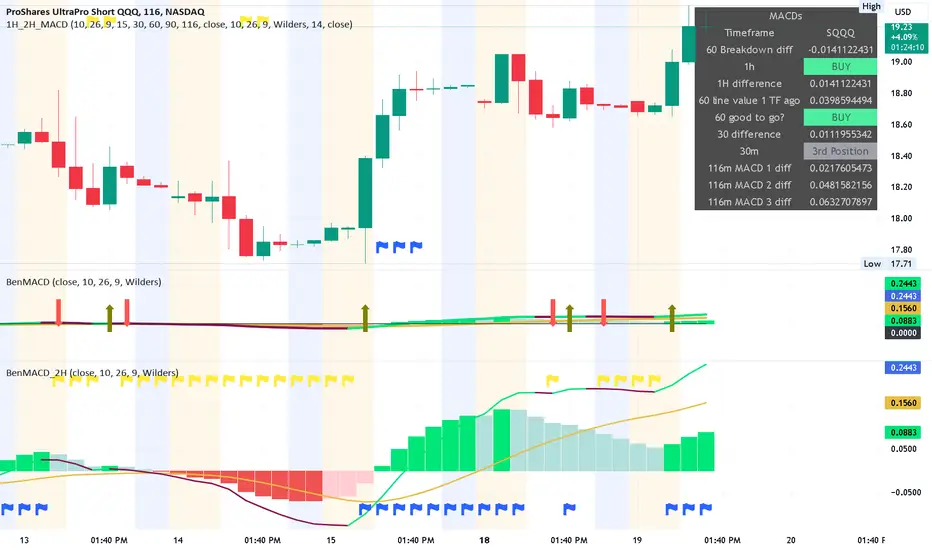 What I've created is a MACD Wilders based study. By using this study, in TradingView you can take guesswork out of the "curls" and "I think it's curling up? Let me check the blue line and subtract...". Screw all that. It alerts you with big red arrows and big green arrows, and a banner and a message. And it makes sounds. Alert for bullish and a different sound for bearish.