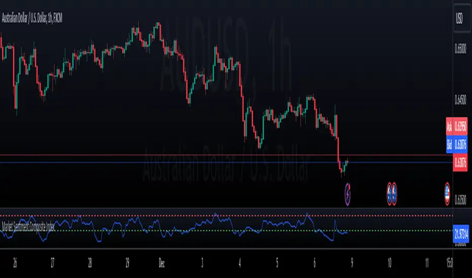 The Market Sentiment Composite Index is an advanced indicator designed to provide traders with a comprehensive view of market sentiment by aggregating data from multiple key indicators. This tool helps traders identify potential overbought and oversold conditions, enabling more informed trading decisions.