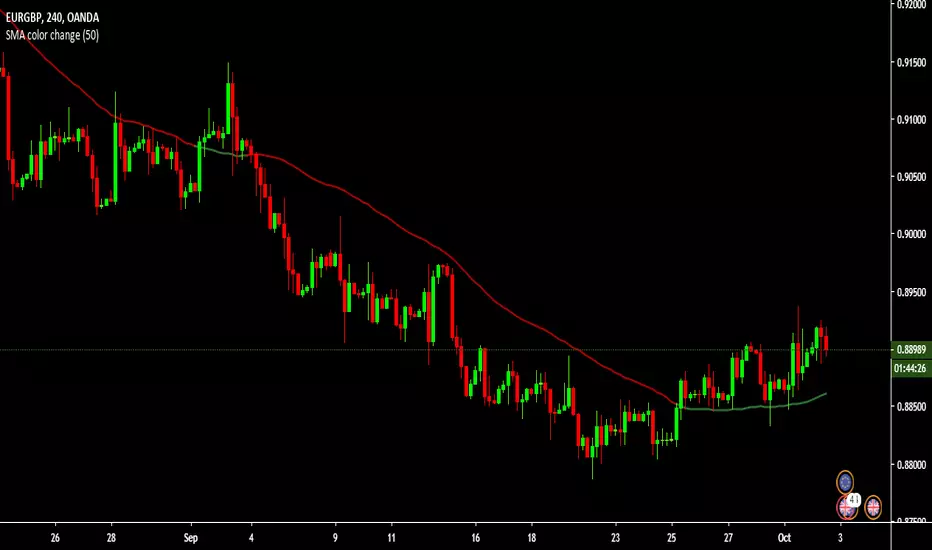 When the Price is above, the SMA will be GREEN to indicate you should look for BUY entries.
