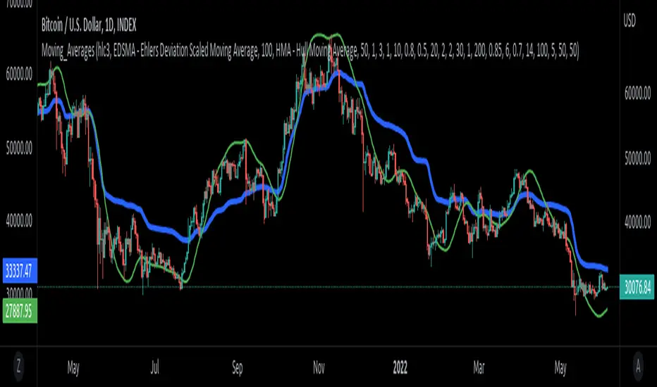 This library contains majority important moving average functions with int series support. Which means that they can be used with variable length input. For conventional use, please use tradingview built-in ta functions for moving averages as they are more precise. I'll use functions in this library for my other scripts with dynamic length inputs.