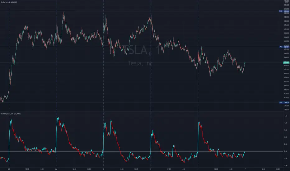 The 4C ATR is a simple indicator that plots a horizontal line on the ATR indicator, which can be used as a minimum or maximum reference value.
