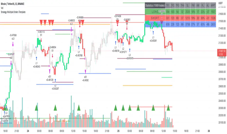 In this Strategy template, users can define multiple take-profit and multiple stop-loss levels.