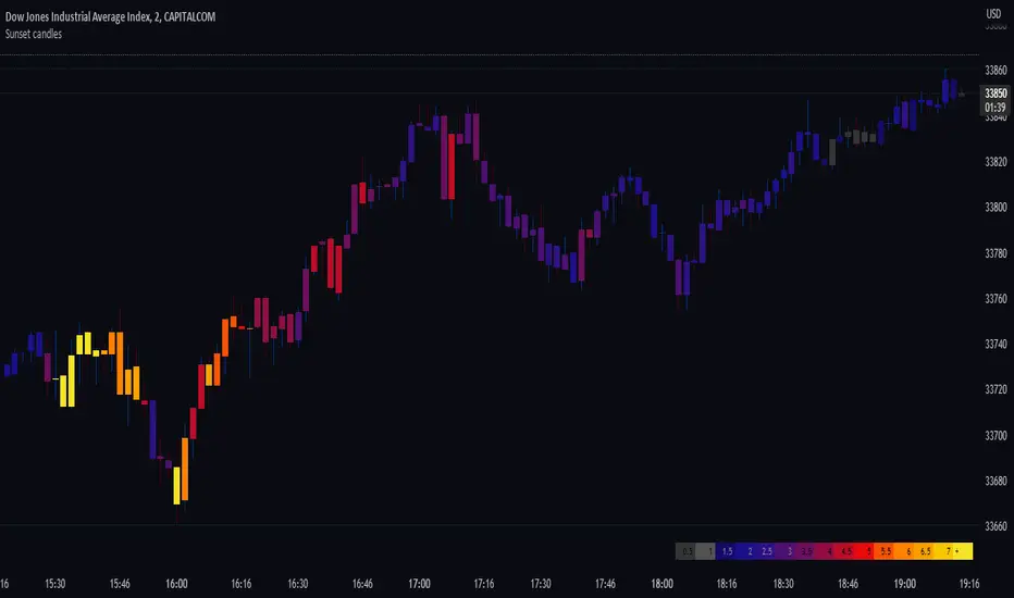 Displays the volume behind each candle with colors, to visualise their evolution over time, directly in the chart.