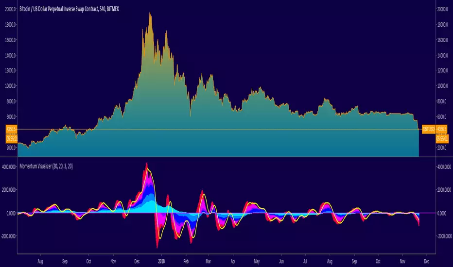 A colorful indicator that visually shows momentum, fast-moving average on the outside and the slower moving averages in the core. The outer moving average is to see where the outer momentum breaks below again.