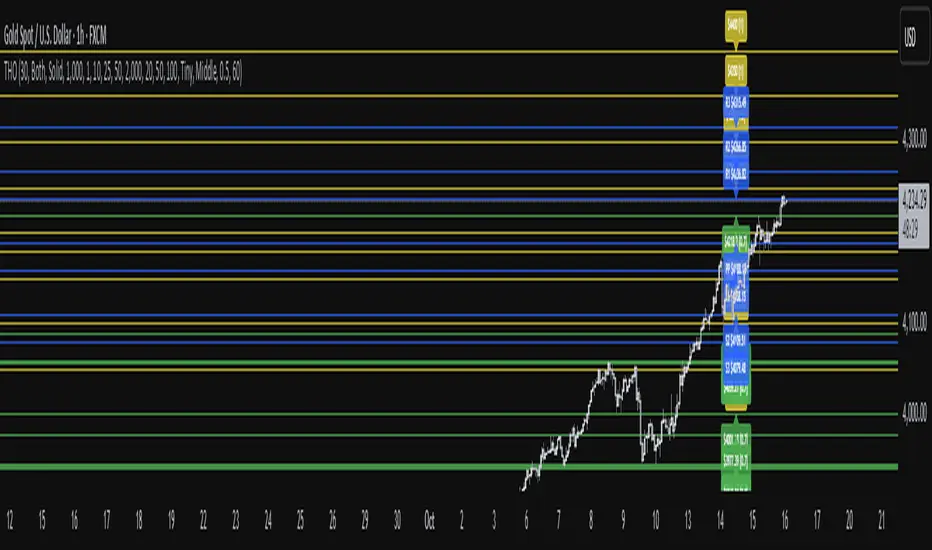 Detects round number levels at three configurable increments (default: 10, 25, 50).