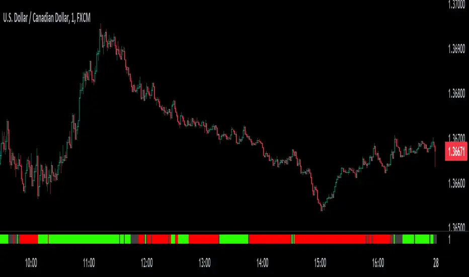 A green color indicates alignment in bullish trends, a red color signifies alignment in bearish trends, while a neutral color (gray) represents no clear consensus between the primary and secondary analyses.