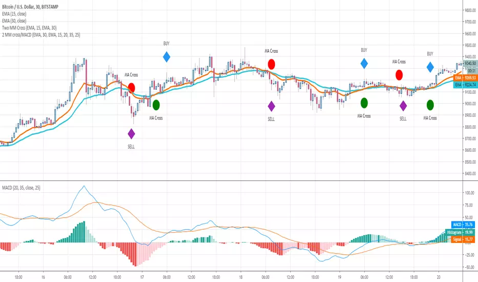 In this case, it will display a blue BUY diamond when both the MM cross and MACD are in the same BUY direction. Same with a PURPLE diamond when both subsequent indicators are bearish