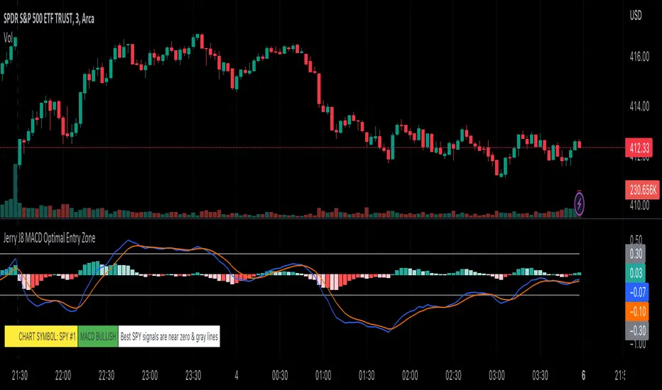 This MACD indicator includes an optimal entry zone for entering your trades and works with any symbol in any time frame. The optimal entry zone is defined by user controlled inputs for up to 10 symbols and is pre-loaded with the SPY, IWM, QQQ, NDX, and TESLA for the 3 minute time frame. Additionally, you can add up to 5 more symbols and adjust the optimal entry zones for each signal.
