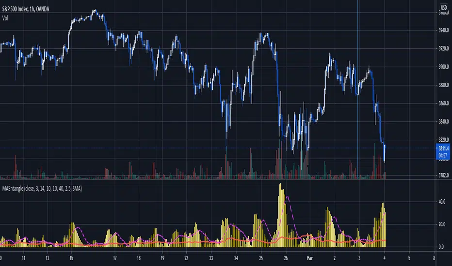 This script uses the gap in moving averages standardized to the average true range to determine entry and exit points.