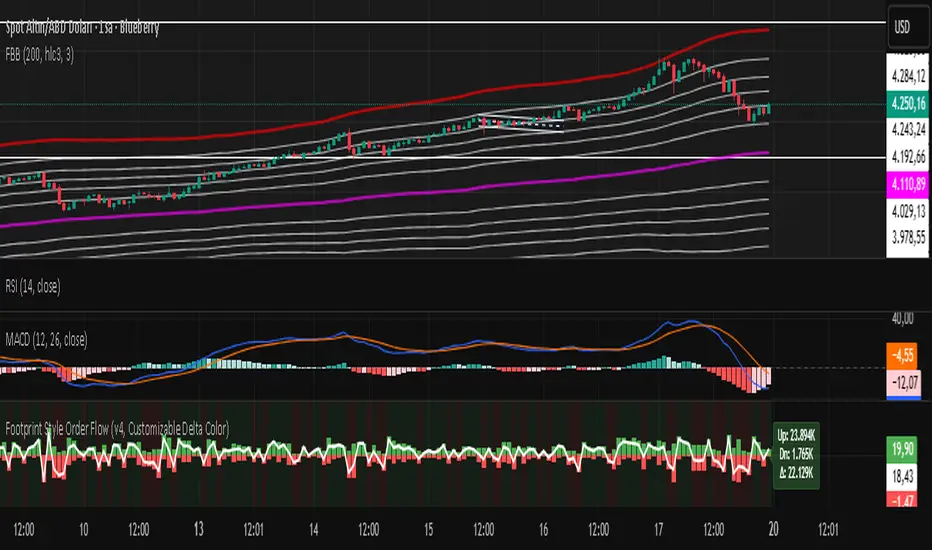Inspired by footprint charts, this tool estimates Up Volume, Down Volume, and their difference (Delta) to highlight whether buyers or sellers are in control. It’s designed for traders who want a clear and professional way to track volume-based momentum directly on their charts.