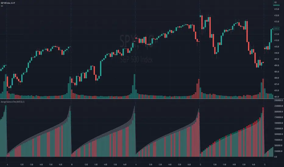 Calculation of average volume at current time for a number of previous sessions, known as Average Volume at Time (AVAT).
