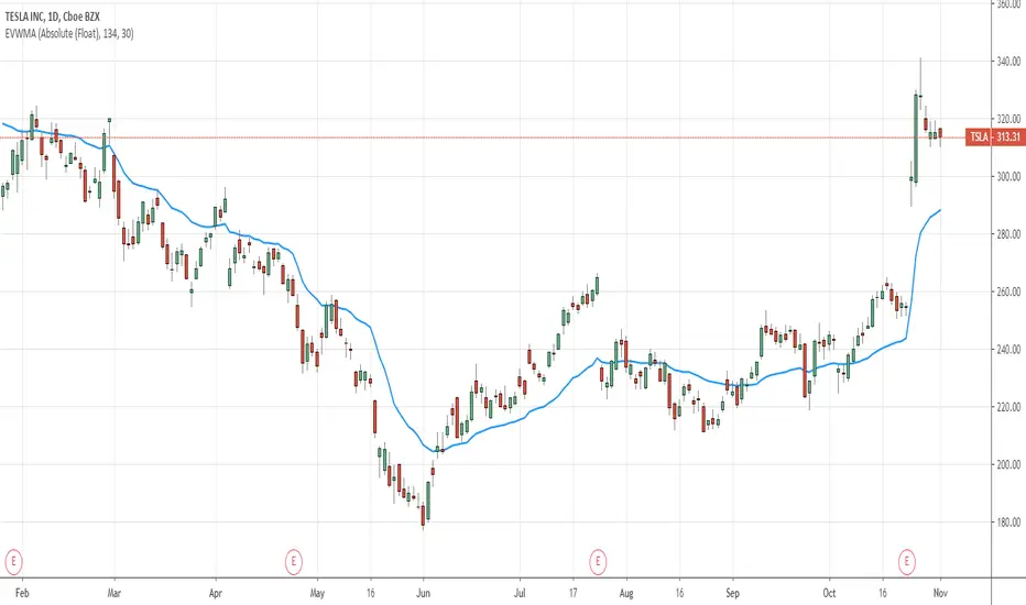 It incorporates volume information in a natural and logical way. The eVWMA can be looked at as an approximation to the average price paid per share.