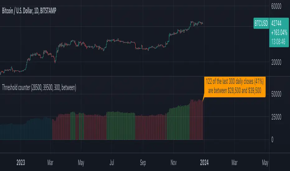 The "Threshold Counter" is a tool for quantifying occurrences of closing prices of an asset that align with specified criteria and is a flexible and visual approach to studying price action.