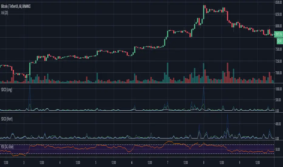 This will show the price change between the high/low of each candlestick as an oscillator with configurable options to show Long/Short or both.