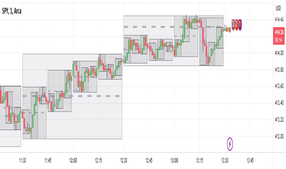 These are 3 High-Low ranges that uses the code of TradingView's built-in Multi-Time Period Chart indicator as well as adds on optional midpoint[1] (or "halfback") to the overlays. Finally, there are labels offset on the right margin that indicate the open price for each of those timeframes. One thing I adjusted is that [0] range of each timeframe is omitted. This is because the original TV indicator's boxes have their right edge completely covering the wicks (Thus, the title for this indicator). This script has plenty of utility, but it designed specifically with the STRAT (Rob Smith) methodology in mind.
