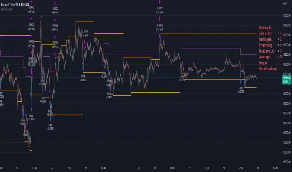 -Martingale first order (the amount of the entrance to the usdt) / next order (Increase of each subsequent order as a percentage)