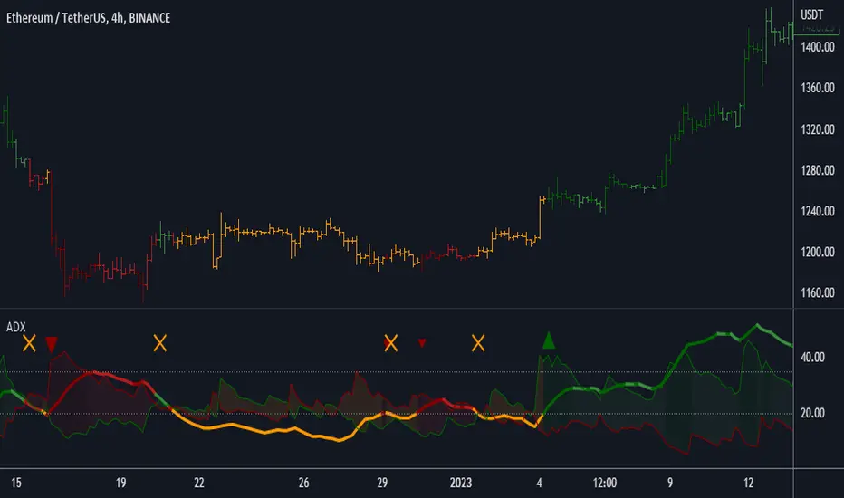 If the value of signal (ADX) is greater than the previous one, there is a greater trend, and the color is intense.