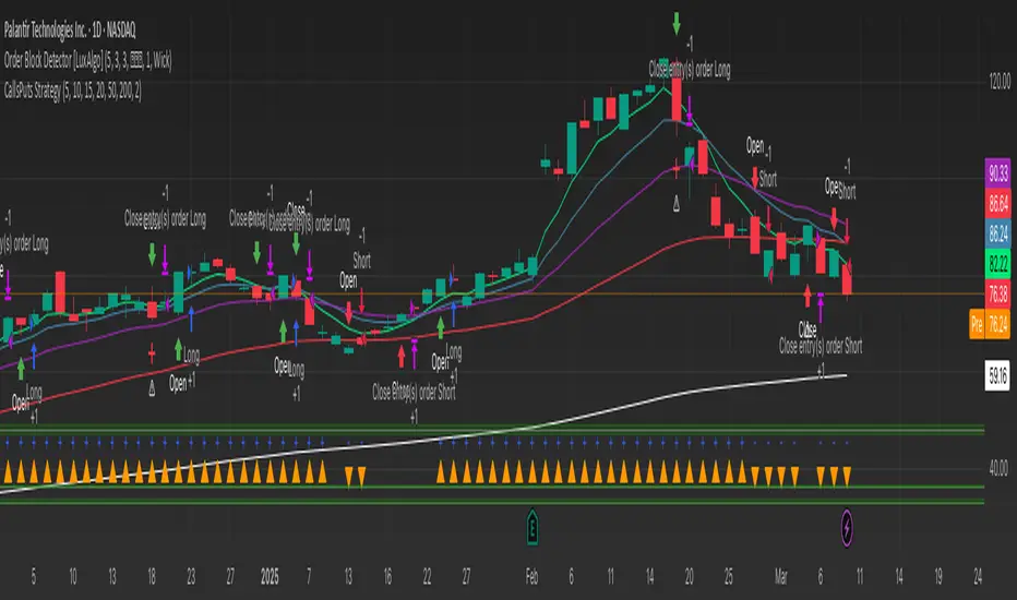 It creates suggestions of when to open and close call positions (GREEN) as well as open and close put positions (RED) it has a early warning system, and in case there is a spike between the last 5 positions it will signal close the position, this is optional (isWarning)