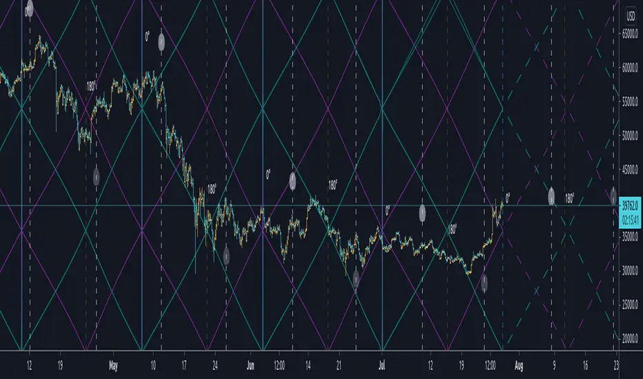 2. Moon Lines : This plots the moon's longitude into price. you can also select your desired $/degree ( price vs time unit) to make these lines better suited for your chart and the asset your playing with. We also didn't forget to add an option to enable harmonics of these lines. In addition, you can select "reverse" to get the downtrending plants as well.