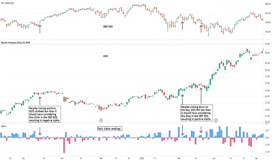 To understand if your stock is behaving strongly or poorly, it is imperative to compare its daily changes to that of the S&P 500. To display true Relative Strength, your stock must outperform the S&P 500 by more than its BETA would suggest. The ALPHA Bars tool shows whether the stock outperforms its benchmark and what positive or negative Alpha it returned for the day. Note, that it does not factor in interest rates as the standard model does. To learn more about how Alpha can be used in stock analysis, please visit: carusoinsights.com/caruso-adaptive-relative-strength/
