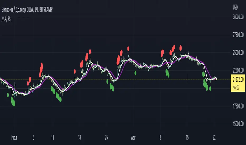 Rus: Индикатор подсвечивает на барах уровни перекупленности и перепроданности по RSI, а так же рисует две скользящие средние на выбор: sma или ema. Уровни RSI, тип скользящих средних и их период устанавливаются пользователем.