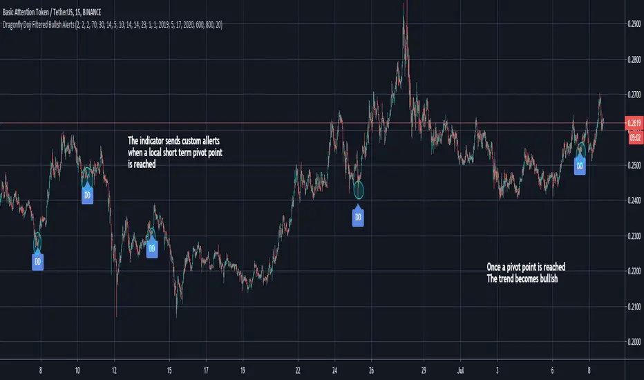 The study enhances standard Dragonfly Doji accuracy by clearing out market noises and manipulations from the indicator's triggers. Specially selected values of Directional Movement Index (DMI) components detect only strong signals while RSI bands indicator is used to find the safiest signals' closure moments.