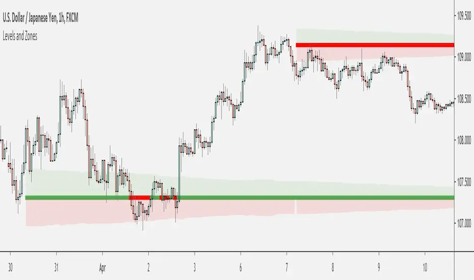 The Levels and Zones is a leading indicator which automatically identifies the best support and resistance levels as well as their corresponding bullish and bearish zones.