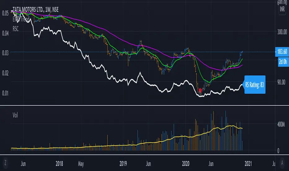 I also devised a Plot RS Rating which is inspired from IBD's RS Rating and matches to some extent. You can turn off/on the RS Rating as per need.
