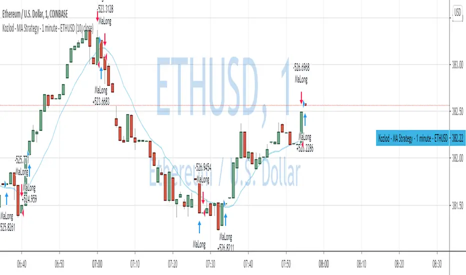 Interesting performance for simple MA strategy on 1m ETHUSD. I used only close price and 15 SMA in it.