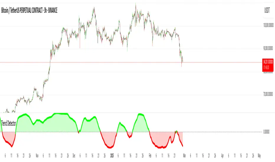 Trend Detector is a streamlined indicator that uses the Pearson correlation coefficient between the average price and time to determine market trends. It measures how closely price movement follows the progression of time over a user-defined period, providing a clear gauge of trend direction on a scale from -1 to 1.