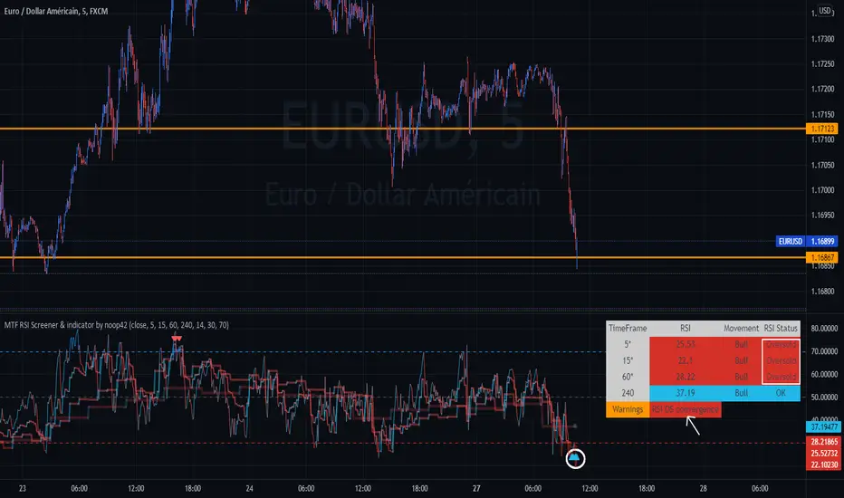 Since my previous x4 multi timeframes Stochastic RSI script seems to have been appreciated, I decided to make a 2nd version of this tool which focuses on the RSI indicator only.