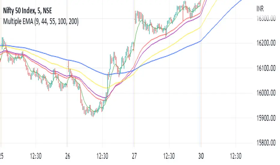 Here, i have merged multiple EMA into one indicator. traders would find it very convenient as multiple widely used EMA`s are merged into 1 indicator. one can also change the time and color from its settings as per their convenience.