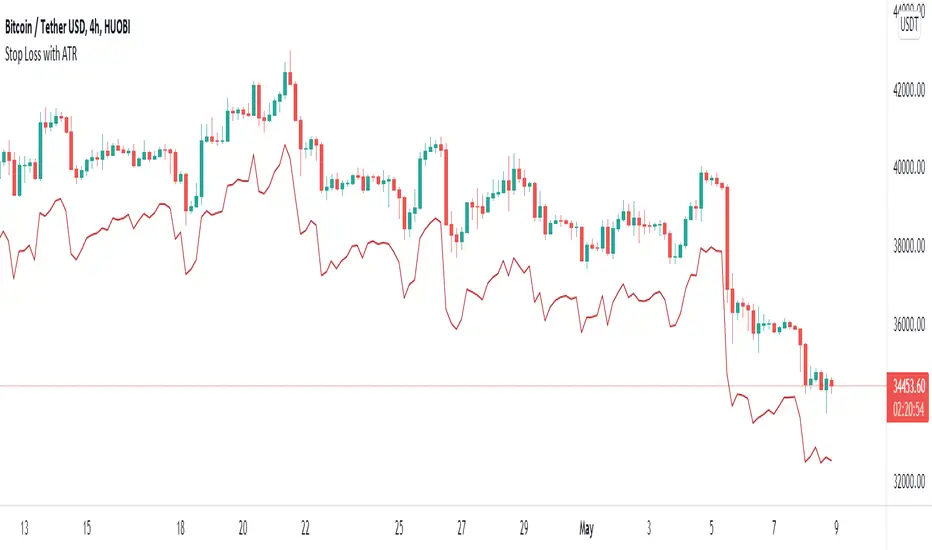 You want to stop loss below 3 ATR. Let's assume the price is 100, the average true range is 5. You will multiply the average true range by 3 and subtract from the price and enter a stop loss order at the 85 price you have reached. Instead of doing this calculation every time, you just need to use this script and set the multiplier to 3. A stop loss line will be drawn below the price candles.